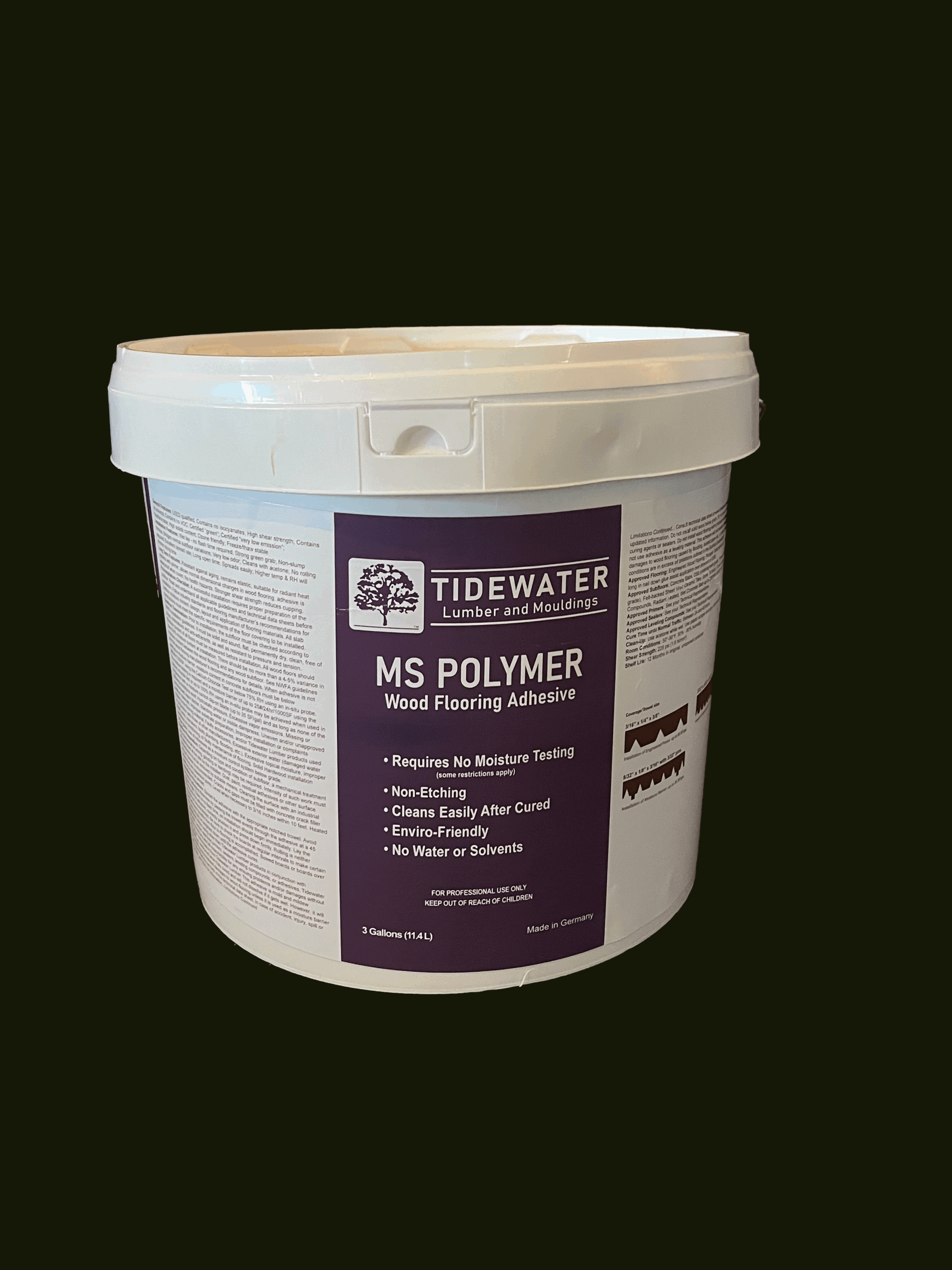 Formulated without water or solvents, it is environmentally friendly, non-etching, and safe for use on all subfloor types. Once cured, any excess adhesive cleans off easily—reducing hassle during installation. Whether you’re a contractor or DIY installer, Tidewater’s MS Polymer Adhesive offers reliable strength, cleaner application, and lasting performance—all with low VOCs and no compromise on quality.